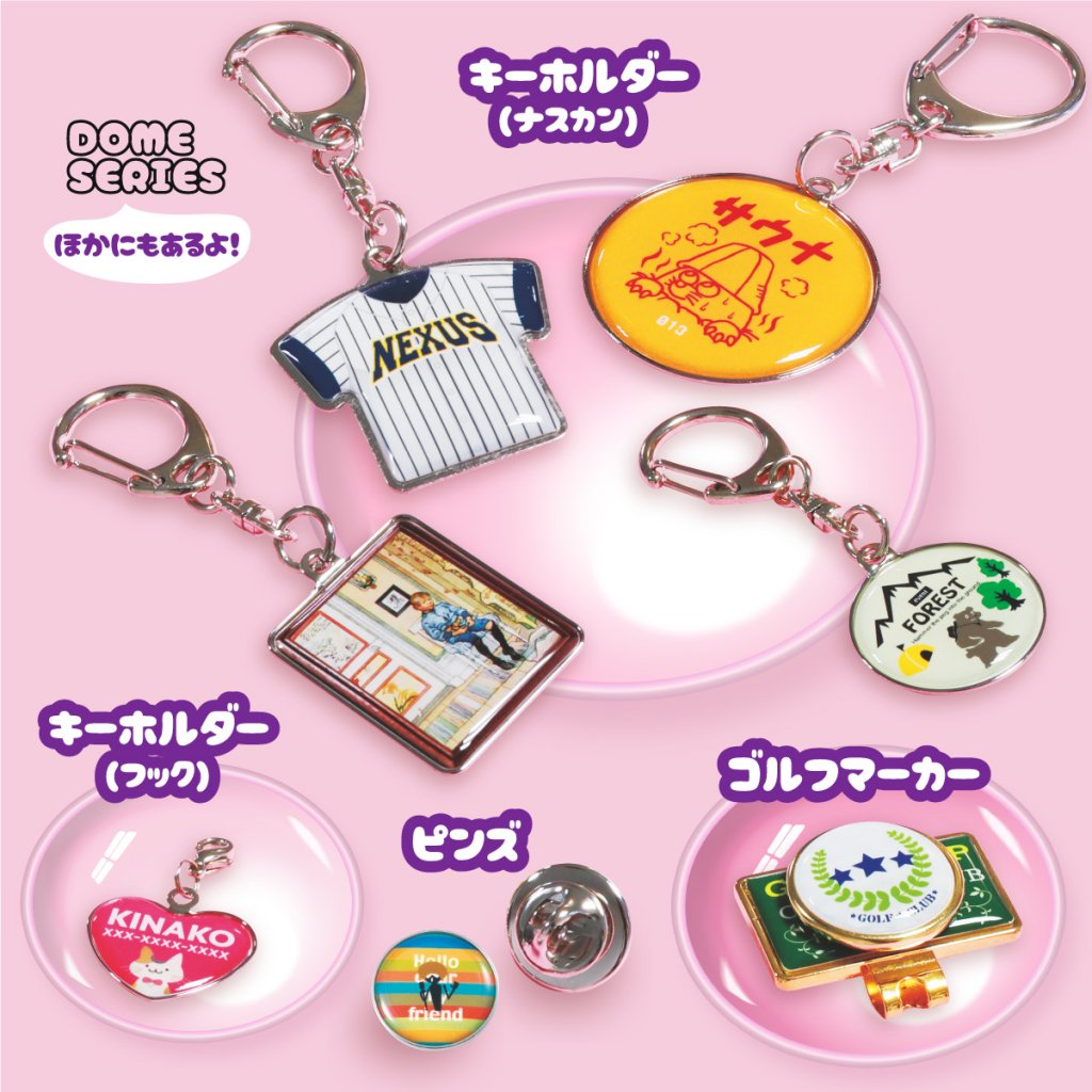 キーホルダー、ピンバッジ、名札など展開できるアイテムも豊富です。